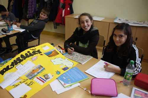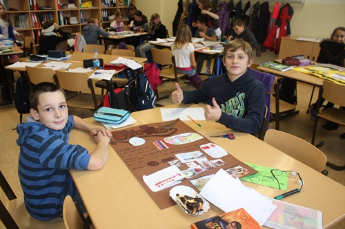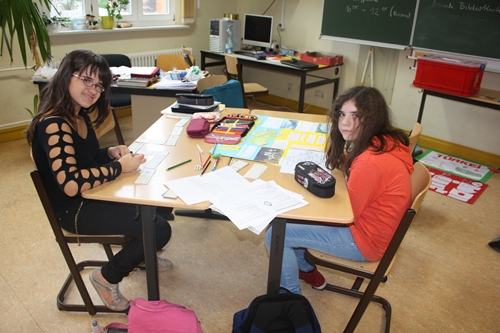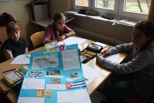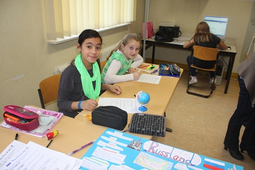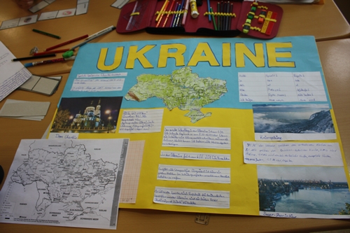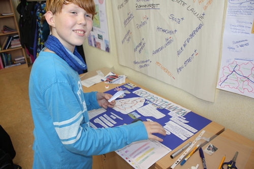 "Wir suchen uns Informationen zu unserem gewählten Land heraus. Und das Team trägt dann alles zusammen und gestaltet ein Plakat." Emely & Maxima Kl. 5.1