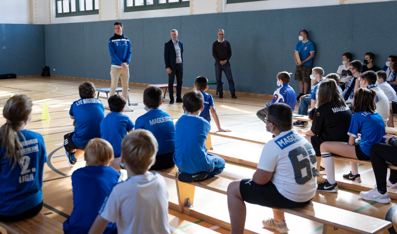 Am Mittwoch, den 13. Oktober 2021, besuchten FCM Geschäftsführer Mario Kallnik Kapitän Tobias Müller die IGS "Willy Brandt", um im Rahmen der Aktion „FCM macht Schule“ 450 Freikarten an die Schülerinnen und Schüler für das Spiel gegen Viktoria Berlin am 23.10.2021, um 14 Uhr, in der MDCC-Arena zu übergeben. ![]()