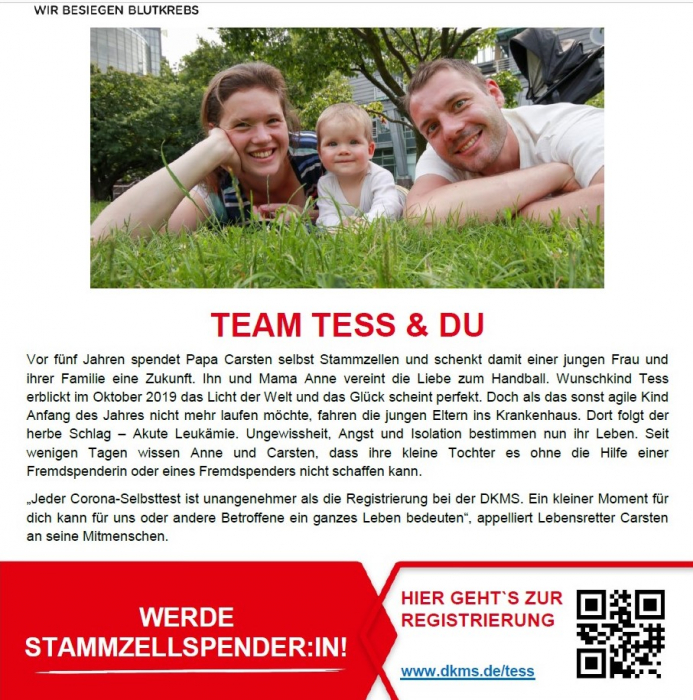 Die Oberstufe der IGS „Willy Brandt“ hat sich an dieser Stammzellspenderregistrierung der DKMS für die kleine Tess und viele andere Betroffene beteiligt.